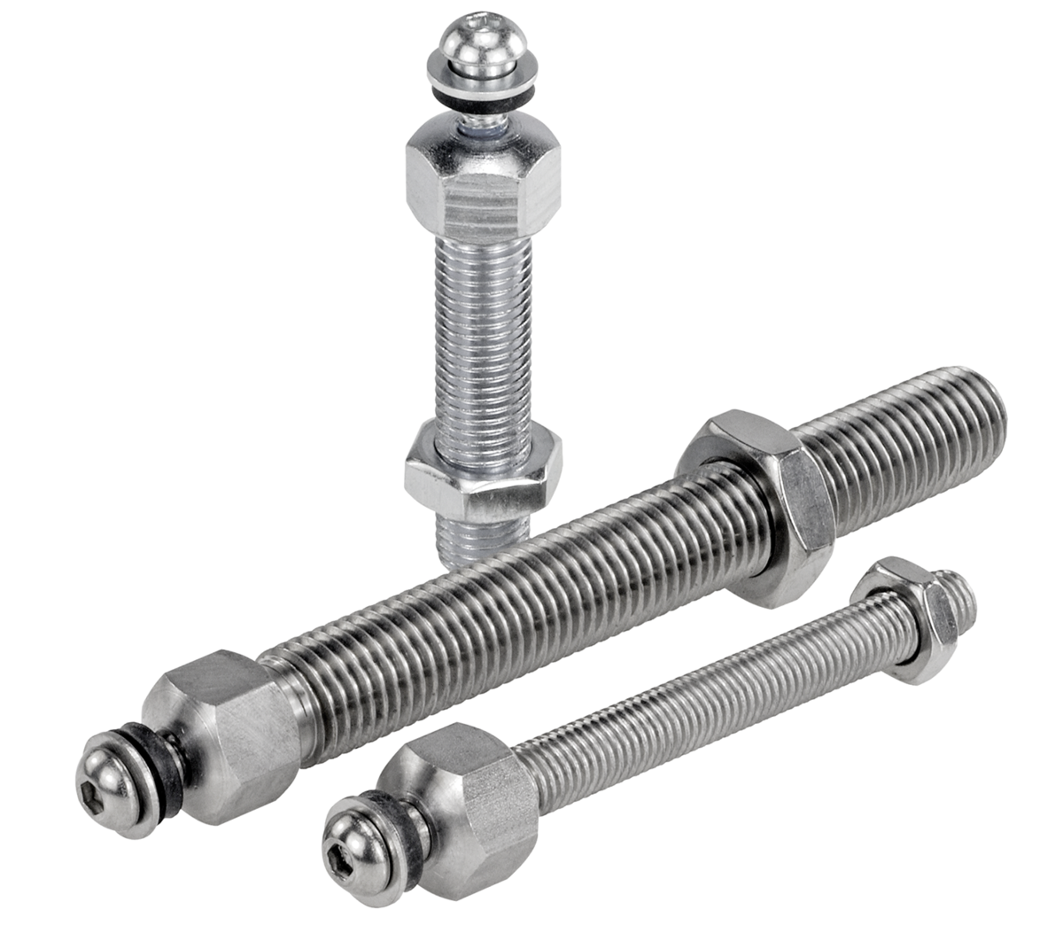 Stellfüße werden aus einer Gewindespindel und einem Teller zusammengestellt. Jede Gewindespindel kann mit jedem Teller kombiniert werden. Die Höhe des gesamten Stellfußes berechnet sich aus der Länge der Gewindespindel + 30 mm. (Gesamthöhe Stellfuß = L + 30 mm)