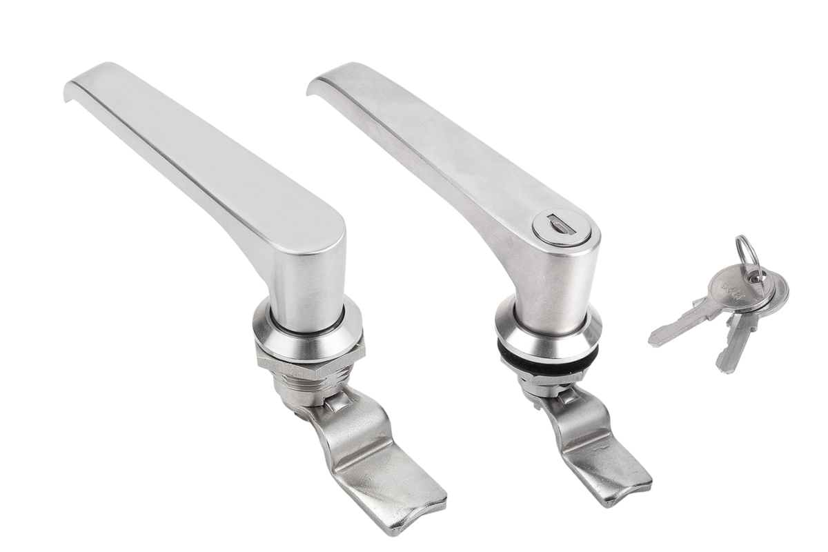 Drehriegel mit L- Griff. Rechts oder links einsetzbar mit einem Schließweg von 90°. Der Drehriegel kann vormontiert eingebaut werden. Schutzart IP65.