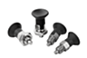 Arretierbolzen ECO Stahl oder Edelstahl kurze Ausführung mit Kunststoff-Pilzgriff, Rastnut und Kontermutter