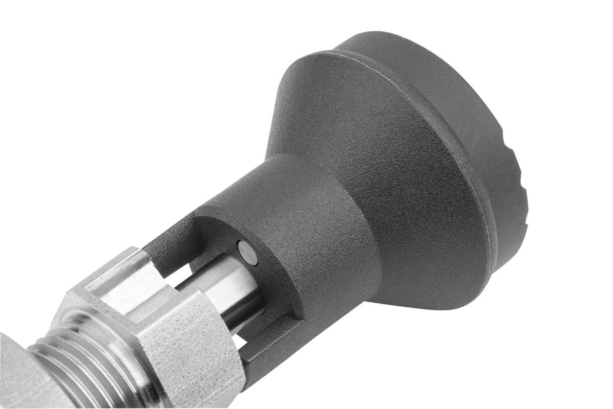 Bei den Arretierbolzen mit Zustandssensor kann der Betätigungszustand elektronisch erfasst und weiterverarbeitet werden.