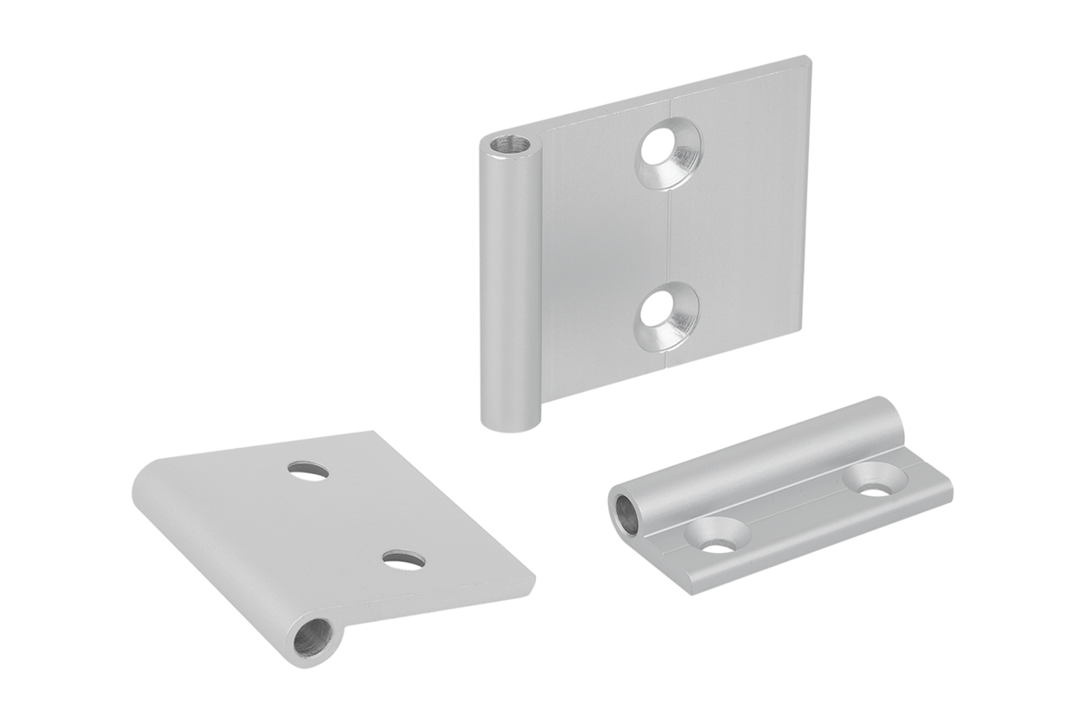 Scharnierhälften für Flächenelemente und Aluminiumprofile.