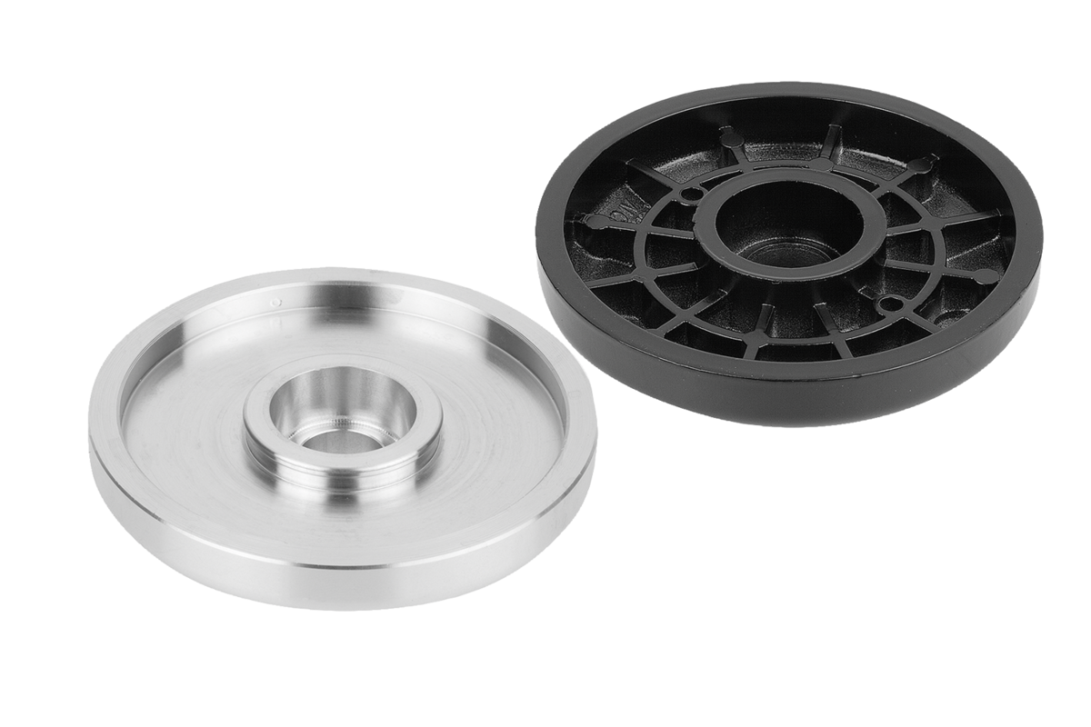 Teller Zinkdruckguss schwarz pulverbeschichtet. Teller Edelstahl blank.