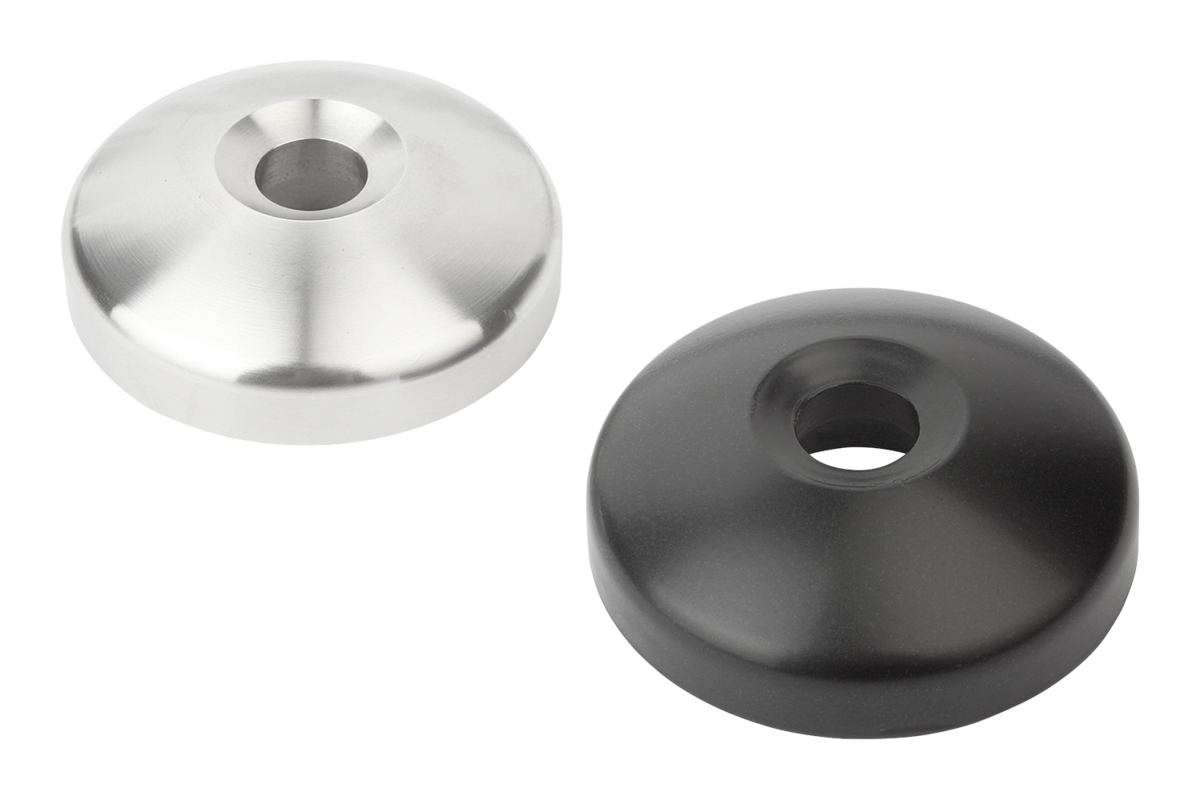 Stellfüße werden aus einem Teller und einer Gewindespindel zusammengestellt. Jeder Teller kann mit jeder Gewindespindel kombiniert werden.
